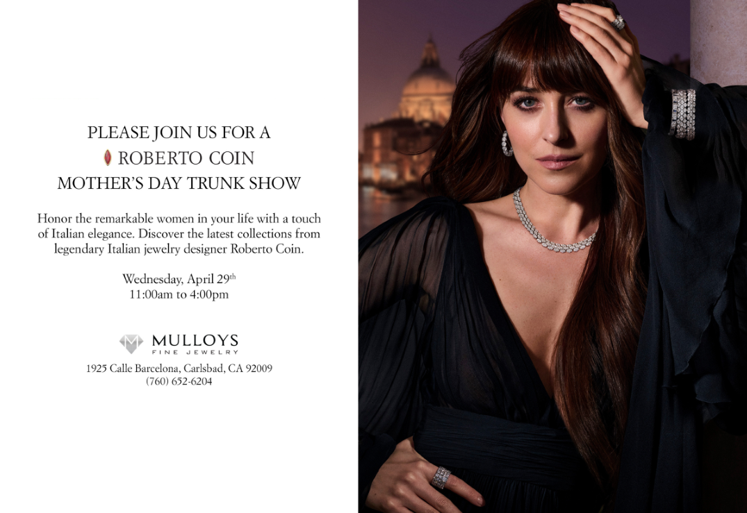 Indulge in the elegance of Italian luxury and celebrate the extraordinary women in your life with renowned designer Roberto Coin. Join Mulloys Fine Jewelry for an exclusive Mother’s Day trunk show—a one-day, curated experience showcasing signature designs alongside rare, hard-to-find pieces.